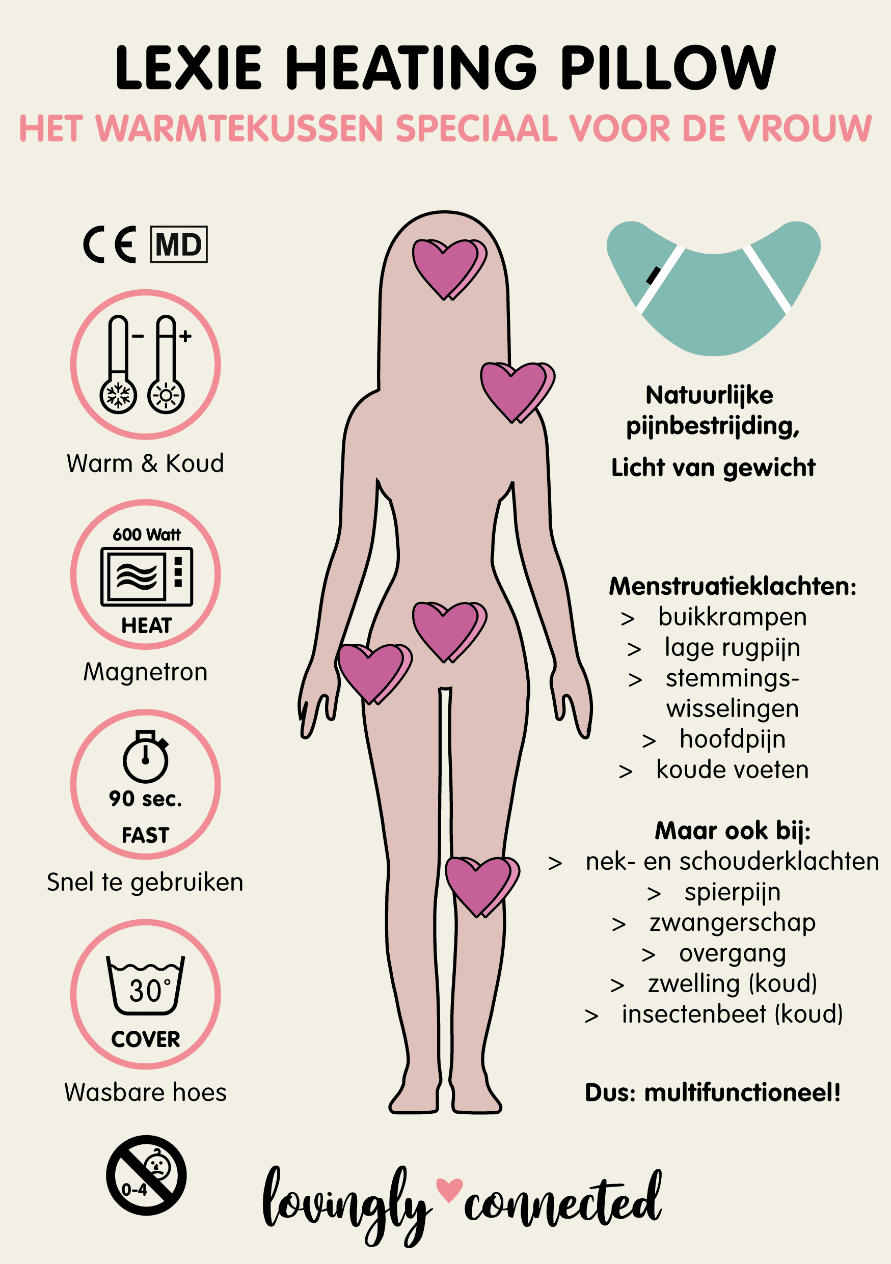 >> Neben Menstruationsbeschwerden wird Lexie oft bei Nackenbeschwerden, Muskelkater (nach dem Sport) und bei Schmerzen im unteren Rückenbereich eingesetzt.