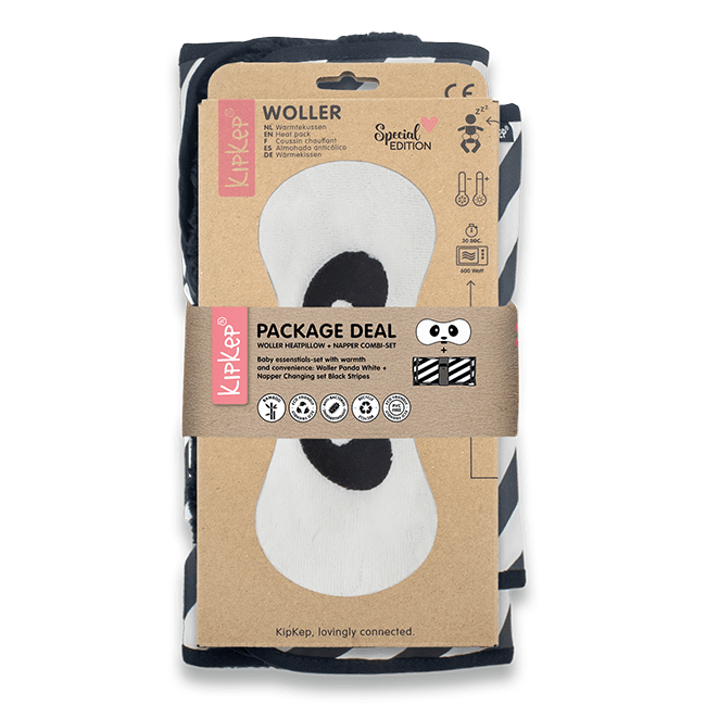 Der Woller Panda White (Bezug aus nachhaltigem Bambus-Fleece) hilft Ihrem Baby, sich bei Unruhe und Bauchschmerzen zu entspannen, während das Napper Combi-Set Black Stripes (aus recycelten Stoffen) das Windelwechseln einfach und stilvoll macht, egal wo Sie sich gerade befinden.